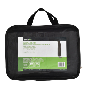 Ben je op zoek naar een parasolhoes die goed beschermt? Deze hoes is ideaal voor je zweefparasol. Met een diameter van 300 cm past hij bij de meeste zweefparasols. Het lichte, maar sterke polyester materiaal biedt goede bescherming tegen weer en wind. De grijze kleur zorgt voor een moderne look die in elke tuin of op elk terras past. De hoes is makkelijk te bevestigen en te verwijderen, zodat je parasol snel beschermd is. Dankzij de hoogte van 15 mm en diepte van 360 mm biedt de hoes volledige dekking voor je parasol.
