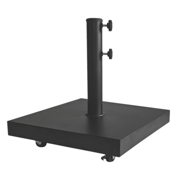 Je parasol blijft stevig op zijn plek met deze vierkante parasolvoet van 25 kg. Gemaakt van metaal en afgewerkt in zwart, dus hij past moeiteloos bij de meeste parasols. De afmetingen zijn 45 x 45 x 5,8 cm. Door de wieltjes verplaats je de voet zonder te tillen. Simpel, effectief en makkelijk in gebruik.