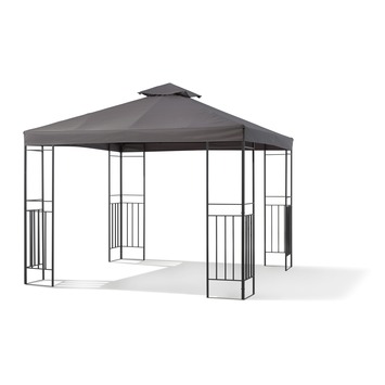 Partytent Cuba is uitgerust met vier stevige poten en zijn bekleed met een antraciet doek. Het dak- en stof aan de poten bestaat uit waterafstotend materiaal (let op: net bestand tegen landurige neerslag). Deze partytent is 295x295 cm en heeft een hoogte van 270 cm en heeft een windvanger als dak. Dit kan zorgen voor een natuurlijke circulatie.