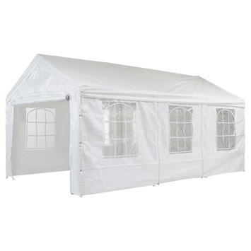De partytent festival 300x600 cm is een royale en stevige partytent. Een extra ruime partytent, ideaal voor feesten of barbecueen. De partytent heeft een polyetheen doek en is wit van kleur. Het frame is gemaakt van aluminium en is roestvrij. Door het extra dikke en stevige buizenframe is deze partytent nagenoeg onverwoestbaar. De partytent wordt geleverd inclusief zijwanden met 'ramen'. Ook is hij waterdicht, zodat er ook bij regen doorgefeest kan worden. Kortom, de partytent Festival is de ideale partytent voor ieder feest. Partytent Festival 300x600 cm is 290 centimeter hoog, 300 centimeter breed en 600 centimeter diep.