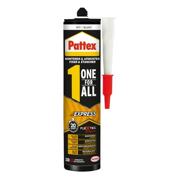 Pattex montagekit One for ALL Express wit 390 gr is een snel drogende montagekit welke geschikt is voor het lijmen en afdichten van alle materialen onder alle omstandigheden. Pattex montagekit One for ALL Express wit 390 gr is overschilderbaar, droogt snel, is extra flexibel en heeft een extreem hoge eindsterkte.
