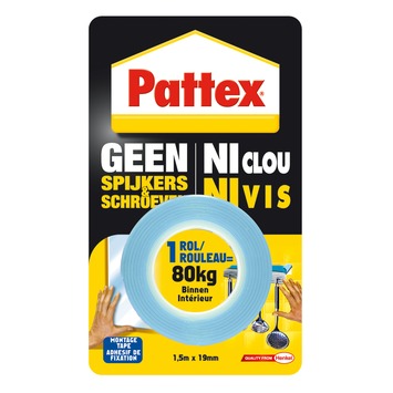 De Pattex montagetape 1,5m is een dubbelzijdig klevende bevestigingstape voor gebruik binnen. Met behulp van de tape kun je voorwerpen bevestigen zonder spijkers of schroeven.