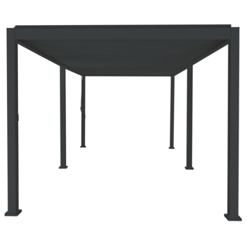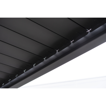 Het aluminium frame en gegalvaniseerde stalen lamellen maken deze pergola uitermate weerbestendig en zorgen voor een lange levensduur.