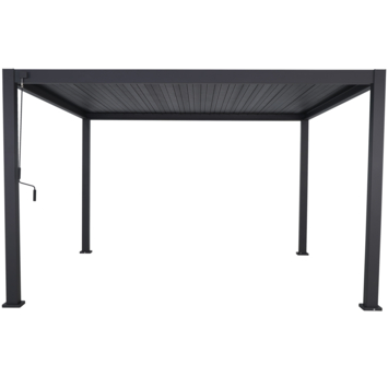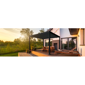 Het lamellendak van de pergola kun je eenvoudig zelf bedienen (open en dicht), waardoor je in elke situatie comfortabel buiten kunt zitten.