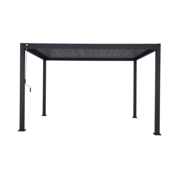 Het lamellendak van de pergola kun je eenvoudig zelf bedienen (open en dicht), waardoor je in elke situatie comfortabel buiten kunt zitten.