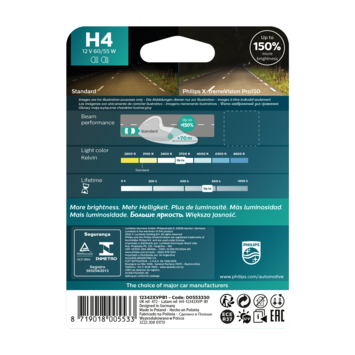 Met de Philips H4 X-tremeVision Pro150 profiteert u van 150% helderder licht.