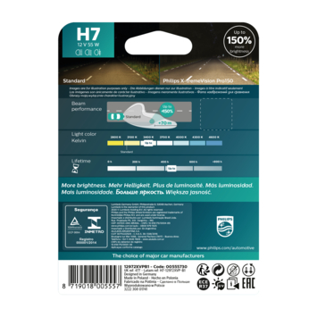 Met de Philips H7 X-tremeVision Pro150 profiteert u van 150% helderder licht.