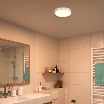 De Philips SuperSlim badkamer plafondlamp valt op door zijn ranke ontwerp. De zwarte sierrand maakt de plafondlamp tot een stijlvolle uitbreiding van jouw moderne badkamer. Het warmwitte LED-licht is bijzonder krachtig 18 W en schijnt meteen op volle kracht. Met de SceneSwitch-functie kun je de lamp met behoud van de oorspronkelijke lichtkleur dimmen met jouw standaard lichtschakelaar. Wanneer je de lamp uitschakelt, en na langer dan vijf minuten terug inschakelt, dan gaat de lamp aan met de laatste gekozen instelling. Door de IP44-classificatie is deze plafondlamp zeer geschikt voor vochtige ruimtes.