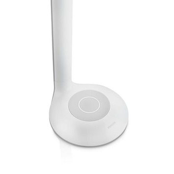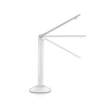 De Philips bureaulamp Lamina wit is een moderne bureaulamp. Het eenvoudige strakke design en de witte kleur geven de lamp een moderne uitstraling. De bureaulamp geeft helder licht waardoor deze lamp uitermate geschikt is voor gebruik op je bureau of werktafel. De hoogwaardige LEDs in deze bureaulamp hebben een positieve invloed op je concentratievermogen. De LEDs zijn daarnaast energiezuinig en hebben een lange levensduur. Je kunt de lamp aan- en uitschakelen met slechts een vingerbeweging. De lamp is geschikt voor een maximaal vermogen van 3 watt. Een lichtbron wordt meegeleverd.