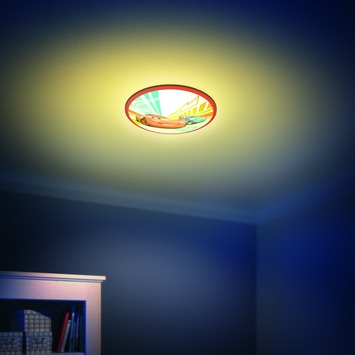 De Philips Disney wand-en plafondlamp Cars is een vrolijke lamp die iedere kinderkamer laat stralen. De ronde lamp heeft een leuke print met alle favoriete Cars-figuren van je kind. De kinderkamer wordt met deze lamp op een leuke en kleurige manier verlicht, door middel van LED-technologie. Hiermee bereik je de perfecte lichtinstelling voor de dagelijkse bezigheden van je kind. En de lamp is zo ontworpen dat het helemaal veilig is voor kleine nieuwsgierige handjes. Je kunt de lamp zowel aan de wand als aan het plafond bevestigen.