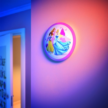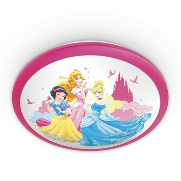 De Philips Disney wand- en plafondlamp Princess is een vrolijke lamp die iedere kinderkamer laat stralen. De ronde lamp heeft een leuke print met alle favoriete prinsessen van je kind. De kinderkamer wordt met deze lamp op een leuke en kleurige manier verlicht, door middel van LED-technologie. Hiermee bereik je de perfecte lichtinstelling voor de dagelijkse bezigheden van je kind. En de lamp is zo ontworpen dat het helemaal veilig is voor kleine nieuwsgierige handjes. Je kunt de lamp zowel aan de wand als aan het plafond bevestigen.