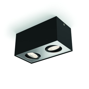 Met de Philips duospot Box zwart haal je een sfeermaker in huis. Het minimalistische design maakt deze spot geschikt voor ieder interieur. Pas je stemming aan met het juiste licht. De geïntegreerde LED's zijn WarmGlow dimbaar en daarmee te dimmen naar het juiste lichtniveau. Gebruik helder functioneel licht om mee te werken en dim naar uitnodigend warm licht om meer sfeer te creëren. Ben je op zoek naar een andere kleur of ander formaat? Opbouwspot Box is ook verkrijgbaar in wit en in een enkel en 4 - spot.