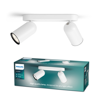 De Philips myLiving duospot uit de serie Pongee is een mooie, moderne spot voor in jouw interieur. De lamp is voorzien van twee draaibare spots, waardoor de lamp perfect af te stellen is in de gewenste richting. De witte kleur geeft een frisse touch aan jouw ruimte. Deze spots worden geleverd exclusief lichtbron. Kies bijvoorbeeld voor een WarmGlow LED-lichtbron en geef jouw ruimte extra sfeer. Hoe meer je dimt met WarmGlow, hoe warmer het licht. Op zoek naar een andere kleur? De Pongee serie is naast wit ook verkrijgbaar in zwart.