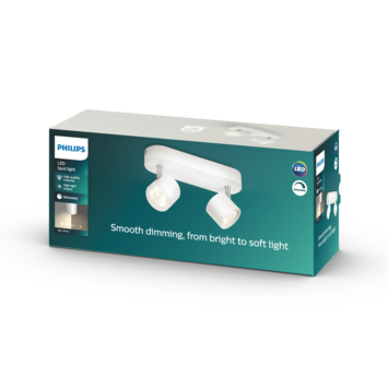 De Philips duo-spot is een plafondlamp voor binnenshuis. De lamp bestaat uit twee verstelbare LED-lampen. Door het mooie strakke design past deze Philips duo-spot perfect in een modern interieur.