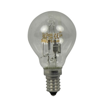 De Philips EcoClassic halogeenlamp kogel helder E14 28W (= 35W) is geschikt voor een E14 fitting. De lamp heeft een vermogen van 28 watt, hiermee heeft de lamp een lichtopbrengst van 370 lumen. Het heldere, warm witte licht van deze lamp heeft een natuurlijke uitstraling waarin de kleuren van je interieur goed tot hun recht komen. Ook heeft de lamp een levensduur van 2000 uur, twee keer zo lang als een standaard lamp. Met deze lamp heb je dus sprankelend licht in de vertrouwde vorm, met een langere levensduur. De lamp schijnt direct met maximale helderheid. Tevens kun je de lamp dimmen, waardoor je gemakkelijk de hoeveelheid licht kunt bepalen.