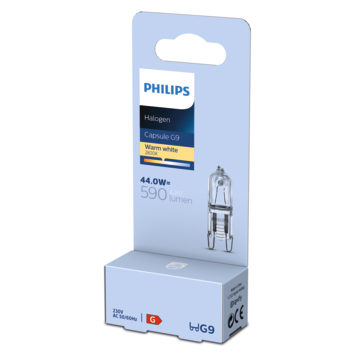 De Philips EcoHalo halogeencapsulelamp helder G9 44W (= 60W) is geschikt voor een G9 fitting. De lamp heeft een vermogen van 44 watt, hiermee heeft de spot een lichtopbrengst van 630 lumen. De lamp geeft helder natuurlijk licht in een warm witte kleur. Daarbij kun je de lamp dimmen en is het dus mogelijk om de intensiteit van het licht te variëren, van sprankelend licht tot een warme gloed. Bovendien heeft de lamp een levensduur van 2000 uur. De lamp schijnt direct met maximale helderheid.