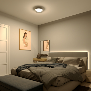 De geïntegreerde LED-lichtbron geeft warmwit licht (2700 K) en is verwerkt in een transparant, modern design dat goed past in de woonkamer. Met SceneSwitch stel je de lichtsterkte eenvoudig in via je bestaande wandschakelaar. Kies tussen 100%, 50% of 10% helderheid.
