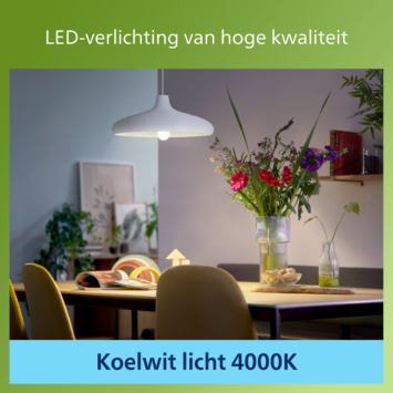 Verlicht je huis met onze meest energiezuinige lamp ooit, de matte peervormige Philips LED-lamp met energielabel A en krachtig koelwit licht. Door 50% minder energieverbruik én een 3,5x langere levensduur dan de gemiddelde LED-lamp bespaar je nóg meer kosten op je energierekening. Omdat deze lamp tot 50 jaar meegaat verspil je ook minder materiaal waardoor je eenvoudig bijdraagt aan een beter klimaat; met LED kan het!