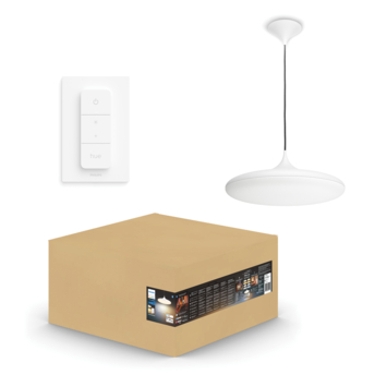 Met zijn unieke vloeiende vormgeving verfraait de witte Philips Hue Cher White ambiance hanglamp elke kamer. Je kunt de lamp instellen op één van de 50.000 tinten wit LED-licht. Bedien de lamp vanuit je luie stoel met de Philips Hue app of de meegeleverde Hue dimmer switch. Hiermee kan je je lamp in- en uitschakelen, dimmen en heb je keuze uit vier verschillende lichtscènes. Voor nog meer mogelijkheden verbind je de hanglamp met een Philips Hue Bridge. Dan heb je ook toegang tot allerlei slimme verlichtingsfuncties, zoals het personaliseren van lichtscènes, routines en timers.