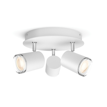 Deze witte ronde Philips Hue Adore opbouwspot is voorzien van drie GU10 White ambiance LED-spots. Die verlichten heel je badkamer met warm tot koelwit licht dat je eenvoudig instelt met de meegeleverde draadloze Philips Hue dimmer switch of de Hue app op je smartphone of tablet. Zo kun je de spots in- en uitschakelen, dimmen en heb je keuze uit vier lichtrecepten die je helpen concentreren, lezen, ontspannen en energie opdoen. Wil je meer slimme verlichtingsmogelijkheden zoals timers en geautomatiseerde routines? Verbind de lamp dan met een Philips Hue Bridge en krijg toegang tot alle slimme functies van Hue. Deze lamp is met IP44 ontworpen: spatwaterdicht en ideaal voor gebruik in de badkamer.