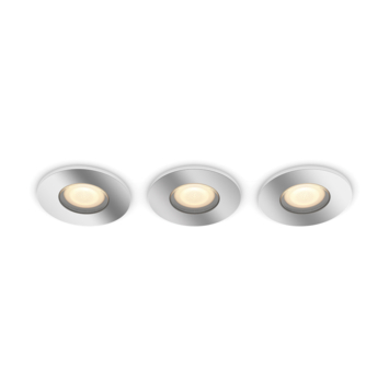 Met de 3-pack witte Philips Hue Adore badkamerinbouwspot richt je het licht precies waar je het nodig hebt in je badkamer. De White ambiance GU10 LED-lampen bieden keuze uit 50.000 tinten warm- tot koelwit licht. Je kan de lampen instellen op de perfecte tint en helderheid voor elk moment Zo heb je het juiste licht om je klaar te maken of om te ontspannen na een lange dag. Gebruik de bijgeleverde slimme schakelaar om je lampen aan en uit te doen, te dimmen of feller te zetten. Je kunt de lamp ook eenvoudig in- en uitschakelen of moeiteloos dimmen met de Philips Hue app op je smartphone of tablet. Wanneer je verbinding maakt met de Hue Bridge krijg je toegang tot alle beschikbare slimme verlichtingsfuncties, zoals het personaliseren van lichtscènes, het instellen van timers en voeg accessoires toe, zoals bewegingssensoren en slimme draadloze schakelaars. De opbouwspot is met beschermingsklasse IP44, dus speciaal ontworpen voor natte omgevingen.