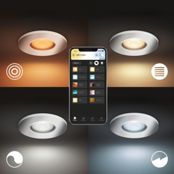 Voeg een Philips Hue Adore witte badkamerinbouwspot toe aan je badkamer. De spot is voorzien van een White ambiance LED-lamp die keuze biedt uit 50.000 tinten warm tot koelwit licht. Je kan de lampen instellen op de perfecte tint en helderheid voor elk moment. Zo heb je het juiste licht om je klaar te maken of om te ontspannen na een lange dag. Je kunt de lamp eenvoudig in- en uitschakelen of moeiteloos dimmen met de Philips Hue app op je smartphone of tablet. Wanneer je verbinding maakt met de Hue Bridge krijg je toegang tot alle beschikbare slimme verlichtingsfuncties, zoals het personaliseren van lichtscènes, het instellen van timers en voeg accessoires toe, zoals bewegingssensoren en slimme draadloze schakelaars. De opbouwspot is met beschermingsklasse IP44, dus speciaal ontworpen voor natte omgevingen.