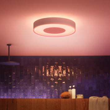 De witte, chique Philips Hue Xamento badkamerplafondlamp (diameter 42cm) is een subtiele toevoeging aan elke badkamer, die zorgt voor een gevoel van ruimte. Het ontwerp is onopvallend, het licht van deze smart lamp perfect. Niet is te gek met de 16 miljoen kleuren van de color and white ambiance LED-lamp. Ga je voor helder licht zodat je fris aan de dag kunt beginnen of kies je aan het eind van de dag voor warmere tinten? Met de eindeloze mogelijkheden creëer jij de perfecte plek van ontspanning, net als in een spa! Je kunt het licht precies instellen zoals jij dat wilt via Bluetooth en de Hue app. Wil je graag een stapje verder in je smart home? Verbind dan de smart lamp met een Philips Hue Bridge en krijg toegang tot timers, automatiseringen en bediening buitenshuis. De Xamento is ontworpen met beschermingsklasse IP44 en dus perfect geschikt voor je badkamer.