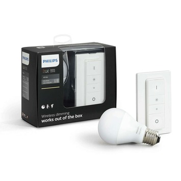 Vloeiend draadloos dimmen. De Philips hue draadloze dimmerset combineert een intelligente draadloze dimmer met een Philips hue white LED-lamp. Geen installatie nodig. Zet de schakelaar neer waar u wilt en gebruik hem als afstandsbediening.