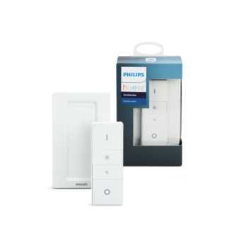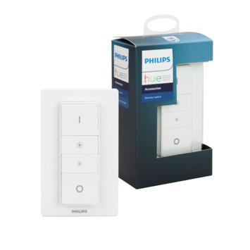 Met de Philips Hue dimmer switch schakel je tussen verschillende lichtstanden en dim je eenvoudig je slimme Philips Hue lampen. Je kunt deze slimme schakelaar eenvoudig bevestigen met de magnetische achterkant, met schroeven of met de meegeleverde tape. Of gebruik de dimmer switch gewoon als afstandsbediening, wanneer je hem van de wandhouder haalt. Je kunt er tot wel tien slimme lampen mee bedienen. Heb je al een Hue Bridge? Dan kan je via de Hue app ook de dimmer switch instellingen personaliseren, precies zoals jij het wilt.