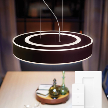 Soms is het zo eenvoudig. Het licht van een mooie zwarte Philips Hue Enrave hanglamp boven je eettafel, een heerlijke maaltijd delen met je vrienden en een goed gesprek. En dan het mooiste: diezelfde elegante lamp kun je ook gebruiken als je achter je laptop aan het werk bent. Met de 50.000 wittinten van deze slimme White ambiance LED-lamp kun je de ideale sfeer creëren, van koel daglicht voor een goede concentratie tot warme gezelligheid in de avond. Het ontwerp van de Enrave is stijlvol, elegant en modern en past in elk interieur. In slechts een handomdraai stel je het licht precies in zoals jij dat wilt via Bluetooth en de Hue app. Ook superhandig: de dimmer switch! Met deze slimme schakelaar zet je je lampen eenvoudig aan en uit en bepaal je welke lichtsterkte je wilt. Hang hem op of gebruik hem als afstandsbediening, het kan allemaal. Voeg je er een Hue Bridge aan toe? Dan kun je met timers, automatiseringen en bediening buitenshuis een echte smart home creëren!