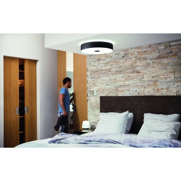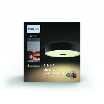 De Philips Hue White Ambiance Fair plafondlamp zwart geeft een dimbaar warm tot koel licht voor elk dagelijks moment. Deze elegante plafonnière kan worden toegevoegd aan je al bestaande Hue systeem of kan worden bediend met de meegeleverde dimmer. Met de geïntegreerd slimme lamp heb je dankzij de 50.000 wittinten altijd het juiste licht om te ontspannen, concentreren, lezen of energie opdoen.