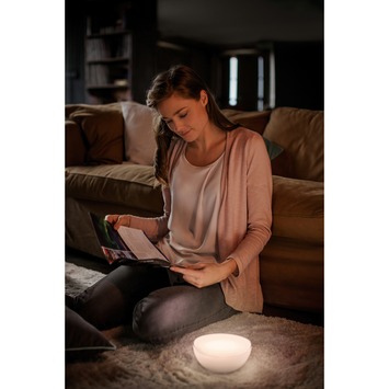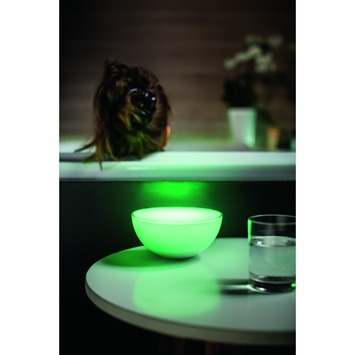 De Bloom kleurveranderende lamp, onderdeel van de serie Philips LivingColors, maakt verbinding met de app Philips Hue, wat betekent dat je met één vinger controle hebt over je verlichting via je iPad, iPhone of iPod touch. Door innovatieve LED-technologie hebben de Bloom-producten een lange gebruiksduur en zijn ze erg efficiënt, waardoor je bespaart op je energierekeningen terwijl je je huis wel gewoon tot 120 lumen kunt verlichten. Kies uit 16 miljoen kleuren om af te stemmen op het moment of je humeur. Gebruik lichteffecten om thuis accenten aan te brengen, bepaalde delen te verlichten, of je wanden van vibrerende schaduwen te voorzien.