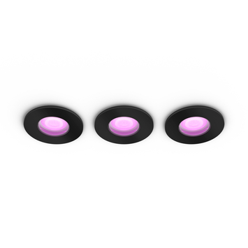 In deze doos vind je drie tijdloze zwarte Philips Hue Xamento inbouwsportjes voor in de badkamer. Zet meteen de juiste sfeer en maak jouw dagelijkse badkamer routine nu nog aangenamer, dankzij de miljoenen tinten aan wit en gekleurd licht. Begin je dag voortaan fris met helder licht en sluit je dag aangenaam af met warme tinten. De drie LED-lampen met GU10-fitting zijn eenvoudig te bedienen via Bluetooth en de Hue app. Met de Bluetooth-functie bedien je tot wel 10 lampen. Voeg ook een Hue Bridge toe en tover jouw huis om tot een smart home. Stel eenvoudig timers, automatiseringen en bedieningen buitenshuis in en kom meteen thuis in de juiste sfeer. De Xamento is ontworpen met beschermingsklasse IP44 en dus perfect geschikt voor je badkamer.