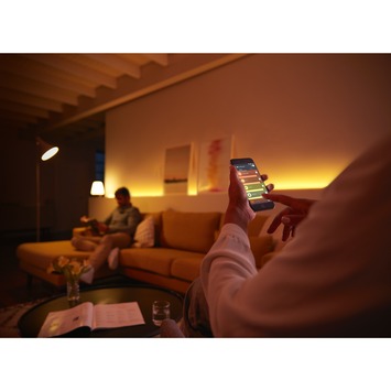 De bediening gaat zeer eenvoudig via de Philips Hue app op een smartphone of tablet. Hiermee zijn tot wel 50 lampen in- en uit te schakelen, en te dimmen. De handige Hue app bediend Hue lampen in elke kamer van het huis en de buitenverlichting. Voeg tot wel 50 slimme lampen toe en bedien ze allemaal door gewoon op een knop op je mobiele apparaat te tikken.