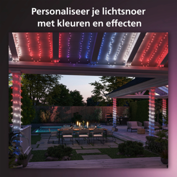 Rond een boom, hangend aan je veranda - de Philips Hue Festavia lichtsnoeren zijn de ultieme binnen- en buitendecoratie. Ze geven de feestdagen - of elke dag - een magisch tintje. Kies uit 250 (20 meter) of 500 (40 meter) mini smart LED's om je huis te versieren met dynamisch kleurrijk licht of gebruik slechts één kleur voor een traditionele uitstraling. De lichtsnoeren werken samen met al je Philips Hue-producten, zodat je een scène in de kamer kunt instellen en de hele ruimte kunt zien opgaan in een perfecte harmonie van kleuren. Wanneer je een scène instelt met Festavia lichtsnoeren, verandert elke kleur op het lichtsnoer in combinatie met andere lampen in de kamer en creëert dit een harmonieuze verlichtingservaring.