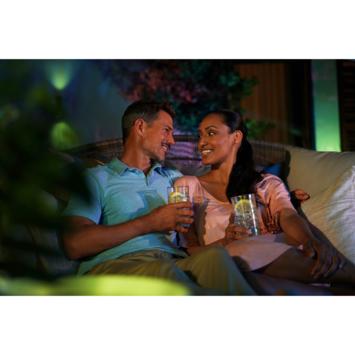 De Philips Hue Appear white and color ambiance muurlamp geeft een subtiel maar toch krachtig LED-licht in 16 miljoen kleuren of 50.000 wittinten. De lichtstralen worden door de vorm van de lamp zowel omhoog als omlaag gericht op de muur. Zo ontstaan er lichtkegels tegen de gevel van je huis. Niet alleen functioneel dus, maar ook nog eens decoratief. Door de LED-lamp te verbinden met de Philips Hue Bridge wordt hij opgenomen in je totale slimme verlichtingssysteem. Dan krijg je via een smartphone of tablet met de Philips Hue app toegang tot allerlei functies – van bediening als je niet thuis bent tot timers en geofencing-technologie. Dat betekent dat de buitenverlichting automatisch aangaat als je je huis nadert. De Hue Appear muurlamp is bovendien spatwaterdicht dankzij zijn IP44-classificatie.