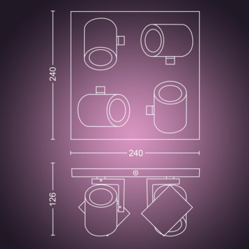 Met de Philips Hue White and Color Ambiance Argenta opbouwspot 4-lichts aluminium kies je voor wit en gekleurd licht. Met deze slimme lampen heb je dankzij de 50.000 wittinten altijd het juiste licht om te ontspannen, concentreren, lezen of energie opdoen. Daarnaast beschik je nog over een spectrum van maar liefst 16 miljoen kleuren. De 4 GU10 spotjes zijn individueel in te stellen omdat ze over een eigen transformator beschikken. Creëer in elke kamer van je huis, volledig je eigen persoonlijke sfeer met deze slimme Hue lamp.