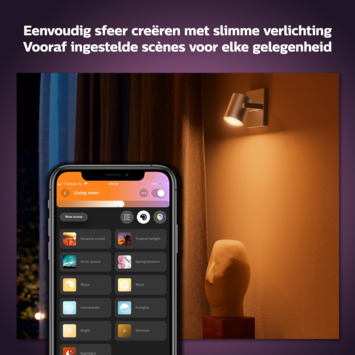 Hue White and Color Ambiance lampen en armaturen maken gebruik van warm wit tot koel daglicht en tot wel 16 miljoen kleuren. Met deze slimme lampen, die kunnen worden gedimd tot subtiele nachtlampjes, kun je het juiste sfeerlicht instellen voor ieder moment. Met Energieklasse A+ en gemiddeld 15.000 branduren is het een zeer duurzame lamp.