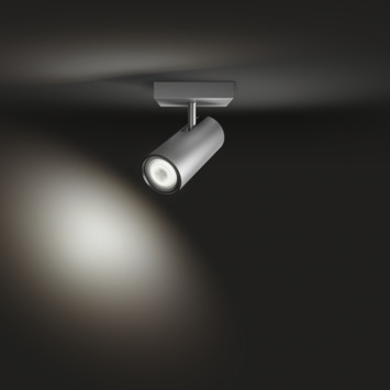 De Philips Hue Buratto 1-lichts opbouwspot wordt geleverd compleet met de Philips Hue draadloze dimmer switch. Deze aluminium spotlamp is voorzien van een White ambiance GU10 LED-lamp die keuze biedt van warm- tot koelwit licht dat je kan helpen ontspannen, lezen, concentreren en energie opdoen. Je kunt de lamp, ook als je van huis bent, bedienen met je smartphone of tablet dankzij de Philips Hue app. De app werkt via de los verkrijgbare Philips Hue Bridge. De Bridge werkt als slimme hub voor je verlichtingssysteem, waarmee je toegang krijg tot alle slimme verlichtingsfuncties, zoals timers en routines.