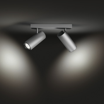 De aluminium Philips Hue Buratto 2-lichts opbouwspot is voorzien van White ambiance GU10 LED-lampen. Deze leveren warm- tot koelwit licht en kunnen je helpen ontspannen, lezen, concentreren en energie opdoen. Je kunt de lampen in- en uitschakelen en dimmen met de meegeleverde Philips Hue dimmer switch. Als je er een losse Philips Hue Bridge bij aanschaft, kun je de lampen, ook als je van huis bent, bedienen vanaf een smartphone of tablet met de Philips Hue app. Je hebt dan toegang tot alle slimme Hue functies, zoals timers en routines.