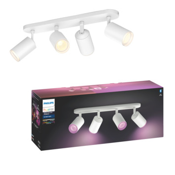 Met de Hue Philips White and Color Ambiance Fugato opbouwspot 4-lichts wit kies je voor wit en gekleurd licht. Met deze slimme lampen heb je dankzij de 50.000 wittinten altijd het juiste licht om te ontspannen, concentreren, lezen of energie opdoen. Daarnaast beschik je nog over een spectrum van maar liefst 16 miljoen kleuren. De 4 GU10 spotjes zijn individueel in te stellen omdat ze over een eigen transformator beschikken. Creëer in elke kamer van je huis, volledig je eigen persoonlijke sfeer met deze slimme Hue lamp.