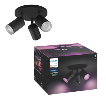 Met de Hue Philips White and Color Ambiance Fugato opbouwspot 3-lichts zwart kies je voor wit en gekleurd licht. Met deze slimme lampen heb je dankzij de 50.000 wittinten altijd het juiste licht om te ontspannen, concentreren, lezen of energie opdoen. Daarnaast beschik je nog over een spectrum van maar liefst 16 miljoen kleuren. De 3 GU10 spotjes zijn individueel in te stellen omdat ze over een eigen transformator beschikken. Creëer in elke kamer van je huis, volledig je eigen persoonlijke sfeer met deze slimme Hue lamp.