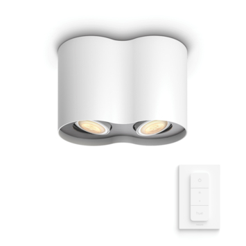 De witte Philips Hue Pillar 2-lichts opbouwspot is met zijn minimalistische, cilindrische vorm een aanwinst voor elk modern interieur. De twee ingebouwde White ambiance GU10 LED-lampen kunnen in- en uitgeschakeld worden en gedimd worden via de Hue app of met de meegeleverde Philips Hue dimmer switch. Het warme tot koelwitte licht helpt je te ontwaken, energie op te doen, je te concentreren, te lezen en te ontspannen. Wil je meer mogelijkheden? Verbind de lamp dan met een apart verkrijgbare Philips Hue Bridge. Dan krijg je toegang tot alle slimme functies, zoals timers en routines en nog veel meer.