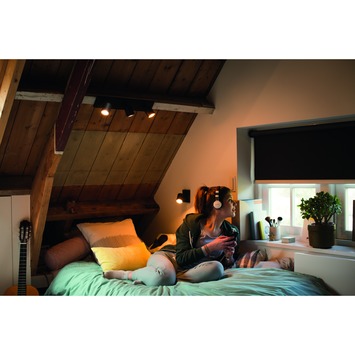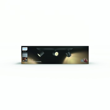 De Philips Hue White Ambiance Runner opbouwspot zwart 3-lichts geeft een dimbaar warm tot koel licht voor elk dagelijks moment. Deze lamp kan worden toegevoegd aan je al bestaande Hue systeem of kan worden bediend met de meegeleverde dimmer. Met deze slimme GU10 lamp heb je dankzij de 50.000 wittinten altijd het juiste licht om te ontspannen, concentreren, lezen of energie opdoen.