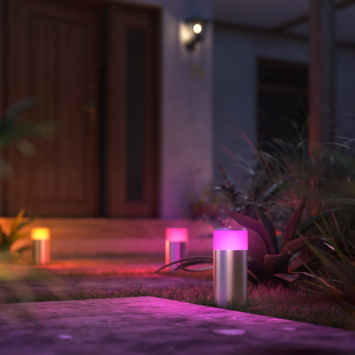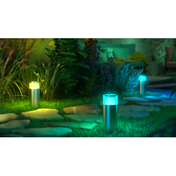 De Philips Hue White and color ambiance Calla sokkellamp schijnt 16 miljoen kleuren en alle tinten wit. In welke mood je ook bent, Philips Hue slimme verlichting kleurt met je mee. Heb je al een Calla in je tuin? Dan is dit een perfecte aanvulling op je bestaande slimme tuinverlichting. Wil je starten met Philips Hue slimme tuinverlichting? Dan heb je naast de Calla ook nog de apart verkrijgbare voedingskabel nodig. De Calla heeft een strak roestvrij design en een IP65-certificering, waardoor deze lamp tegen weer en wind bestand is. Net als bij je andere Hue LED-lampen, koppel je ook deze slimme buitenlamp aan je bestaande Philips Hue Bridge. In de Hue app zet je de lamp gemakkelijk op afstand aan en uit, bepaal je de lichtkleur of gaat je slimme verlichting automatisch aan met zonsondergang. Zo creëer je altijd perfecte sfeer voor jouw tuin. Ook beschikt de app over geofencing, waardoor je slimme Hue lampen je thuis verwelkomen of automatisch uitgaan wanneer je het huis verlaat.