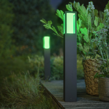 De Philips Hue White and Color Ambiance Impress tuinpaal is een stijlvolle aanwinst voor de tuin. Gebruik de tuinpaal om extra sfeer aan te brengen bij het terras of als functionele verlichting voor looppaden en oprit. Deze sokkel is als solitaire unit te plaatsen.