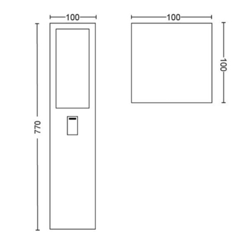 Het armatuur met geïntegreerde lichtbron heeft beschermingsklasse IP44 en is daarmee bestand tegen waterspatten. De sokkel is 77 cm hoog en 10 cm breed en diep. Ook is bij Karwei ter uitbreiding een bewegingssensor verkrijgbaar.