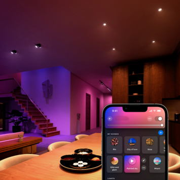 Haal een echte sfeermaker in huis met de Philips Hue White and color ambiance LED-spot met GU10-fitting. Je hebt keuze uit 16 miljoen prachtige kleuren en 50.000 wittinten om voor elk moment de juiste sfeer te creëren. Zo ontspan je met warmwit licht en gebruik je koelwit licht voor extra focus. Je kunt de lamp eenvoudig in- en uitschakelen of moeiteloos dimmen met de Philips Hue app op je smartphone of tablet. Wanneer je verbinding maakt met de Hue Bridge krijg je toegang tot alle beschikbare slimme verlichtingsfuncties, zoals het personaliseren van lichtscènes, het instellen van timers en voeg accessoires toe, zoals bewegingssensoren en slimme draadloze schakelaars.