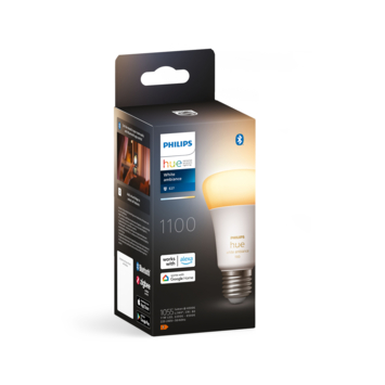 Haal extra sfeer in huis met deze Philips Hue White ambiance standaardlamp. De slimme LED-lamp met E27-fitting geeft precies het juiste licht dat je nodig hebt. Met 1100 lumen is deze lamp gelijk aan een gloeilamp van 75 W. Stel warmwit licht in als je wil ontspannen, koelwit licht als je meer focus nodig hebt of dim het licht voor een heerlijk intiem avondje. Met de Bluetooth-functie en de bijbehorende app bedien je tot wel 10 lampen en kun je in een handomdraai alle lampen op een andere wittint instellen. Koppel de lampen met een Hue Bridge als je wil profiteren van alle slimme functies, zoals timers, automatiseringen, of bediening van je verlichting als je niet thuis bent.