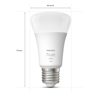 Voeg deze twee Philips Hue White standaardlampen met E27-fitting toe aan je verlichting en verfraai je woning met slim warmwit LED-licht. Met 1100 lumen zijn deze lampen gelijk aan gloeilampen van 75 W. Zet het licht wat feller als je ingrediënten aan het afmeten bent voor je favoriete recept of als je meer licht nodig hebt om bij te werken. Heb je juist een wat intiemere sfeer nodig? Dim de verlichting en geniet van precies het lichtniveau dat je wil. Met de Bluetooth-functie en de bijbehorende app bedien je tot wel 10 lampen en dim je in een handomdraai alle lampen. Koppel de lampen met een Hue Bridge als je wil profiteren van alle slimme functies, zoals timers, automatiseringen, of bediening van je verlichting als je niet thuis bent.